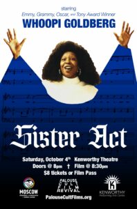 KPAC and Palouse Cult Film Revival present SISTER ACT. When a nightclub singer is forced to take refuge from the mob in a convent, she ends up turning the convent choir into a soulful chorus complete with a Motown repertoire, until the sudden celebrity of the choir jeopardizes her identity. Looking for a sweet musical comedy about a witness to a crime hiding out from killers in a convent? There’s nun better than Sister Act. Keep the party rolling after Moscowberfest and join PCFR for what is always a good time at the theatre!