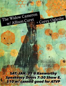 Join us Backstage The Widow Cameron w/ Allison Curet + Corey Oglesby. $12 cover or $10 with canned good donation for Alternative to Violence on the Palouse (ATVP).